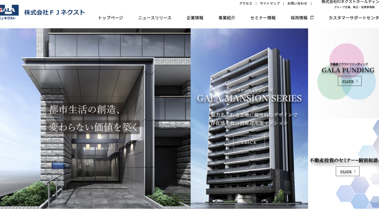 持ち株会社であるFJネクストホールディングスは、不動産投資クラウドファンディング「GALA FUNDING」を運営しています。